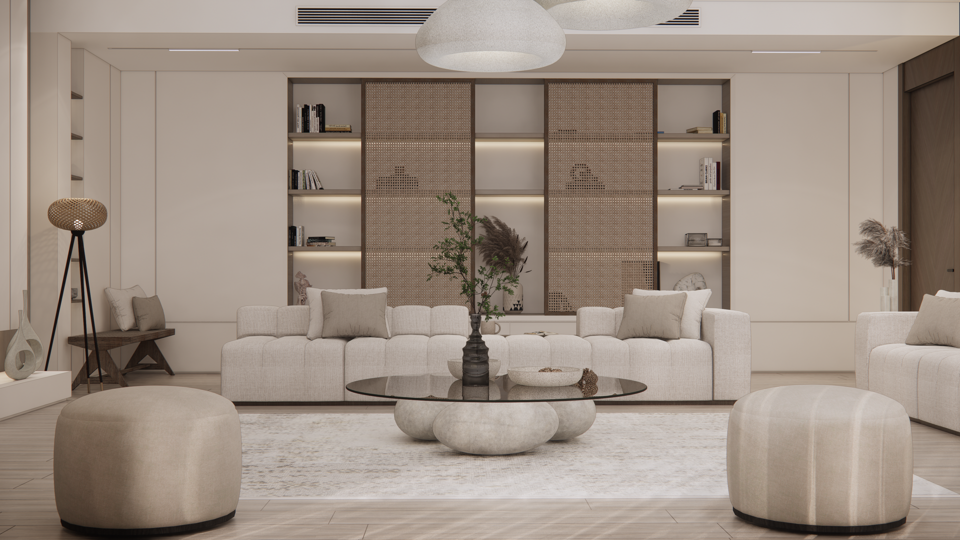 From bedrooms and living rooms to full villa designs, we create residential spaces that combine comfort, elegance, and functionality.